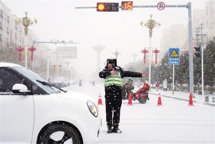 阿克塞:“護(hù)學(xué)崗”守護(hù)雪天學(xué)生出行安全