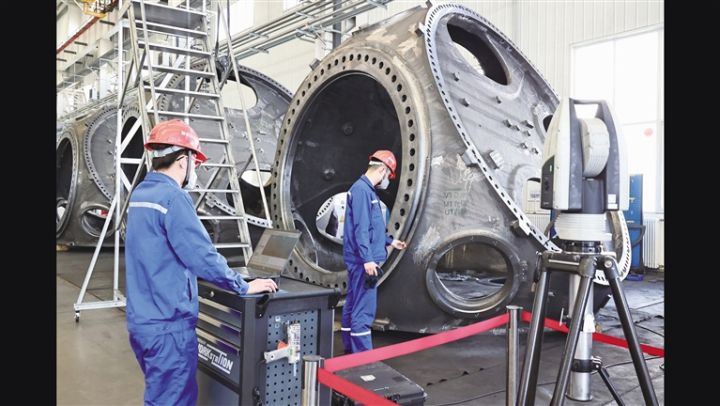 在酒泉經開區南園的酒泉一重風電設備有限公司,車間內一片繁忙,工人各司其職緊張作業。為完成今年3萬噸的生產任務,車間24小時輪班運轉,全力搶抓生產進度。
